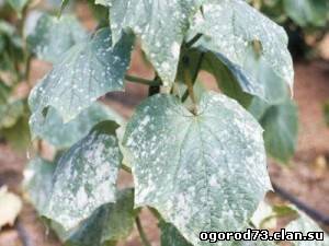 Самая распространенная болезнь огурца — мучнистая роса, поражающая все надземные органы растения, особенно сильно листья и черешки. Вначале на верхней стороне листа появляются единичные небольшие белые с мучнистым налетом пятна, которые быстро увеличиваются в размере, в дальнейшем они образуются также и на нижней стороне листа, черешках и стебле.